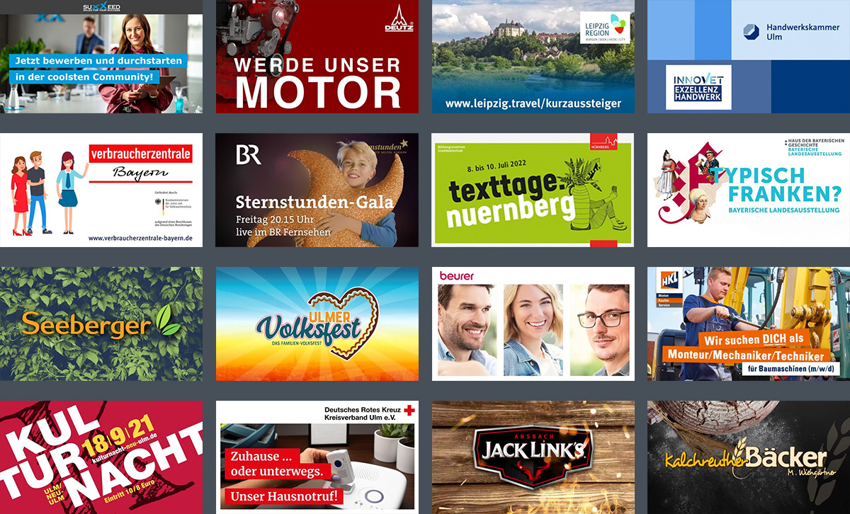 We not only act as technical outfitters but also as an operator and marketers. As a long-standing provider of Center and Fahrgast TV, we enable you to reach more than 770,000 passengers and visitors in the cities of Ansbach, Bayreuth, Nuremberg, Ulm, and Neu-Ulm every day.